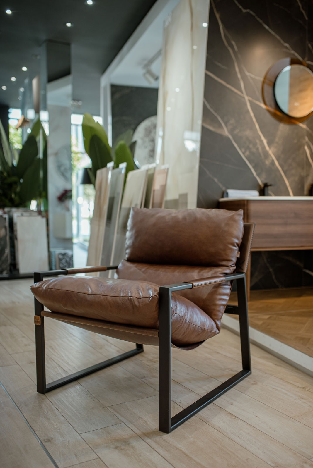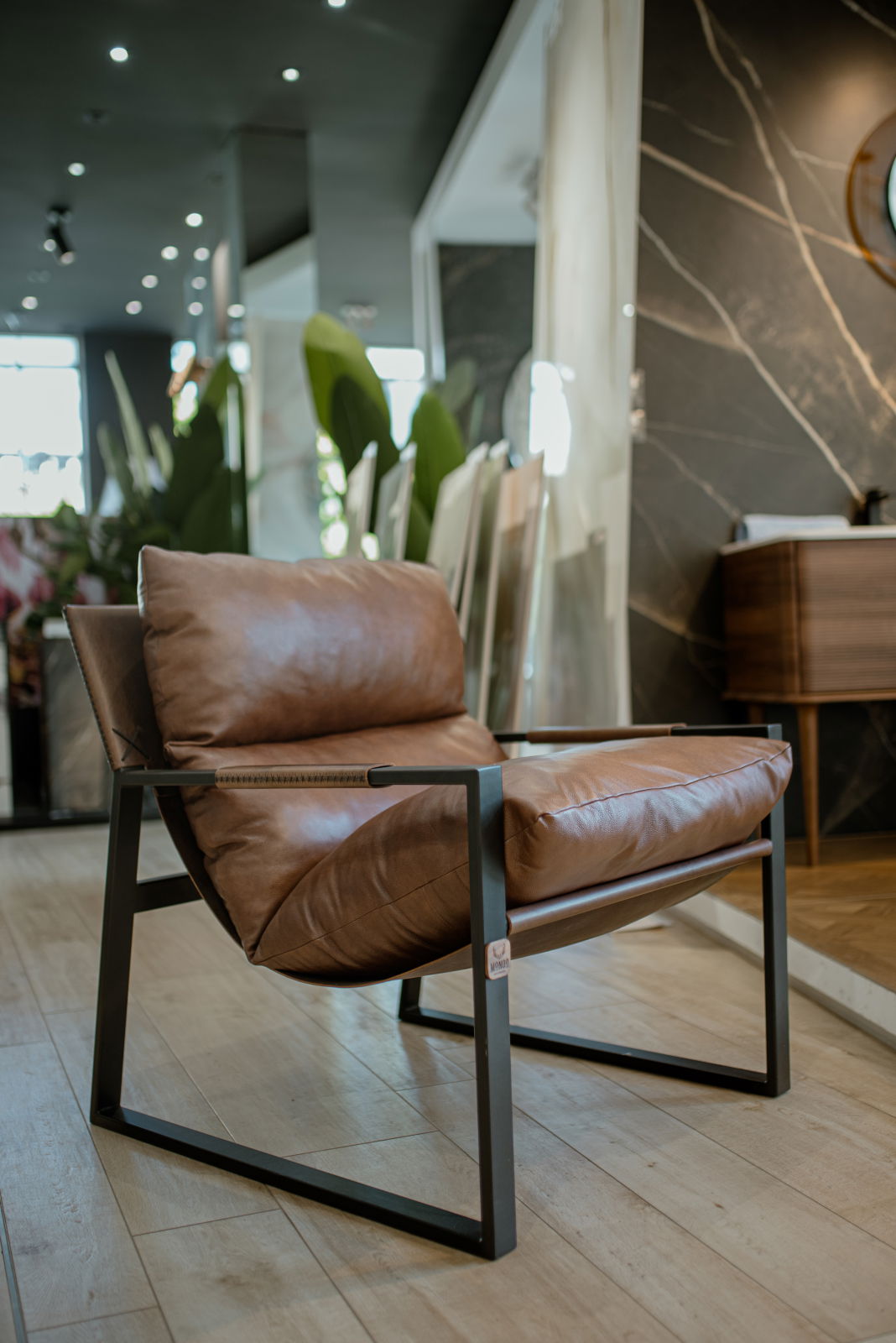Stil industrial, din piele, cusut manual iar metalul vopsit în câmp electrostatic pentru o mai bună rezistență în timp fotoliul Nordland e ideal pentru zona de zi sau zona de relaxare, fie lectură fie vizionarea unui film.